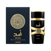 Asad van Lattafa Perfumes is een amberkleurige geur speciaal ontworpen voor mannen en uitgebracht in 2021. Het opent met topnoten van zwarte peper, tabak en ananas, gevolgd door hartnoten van patchouli, koffie en iris. De geur eindigt met een basis van vanille, amber, droog hout, benzoë en labdanum.