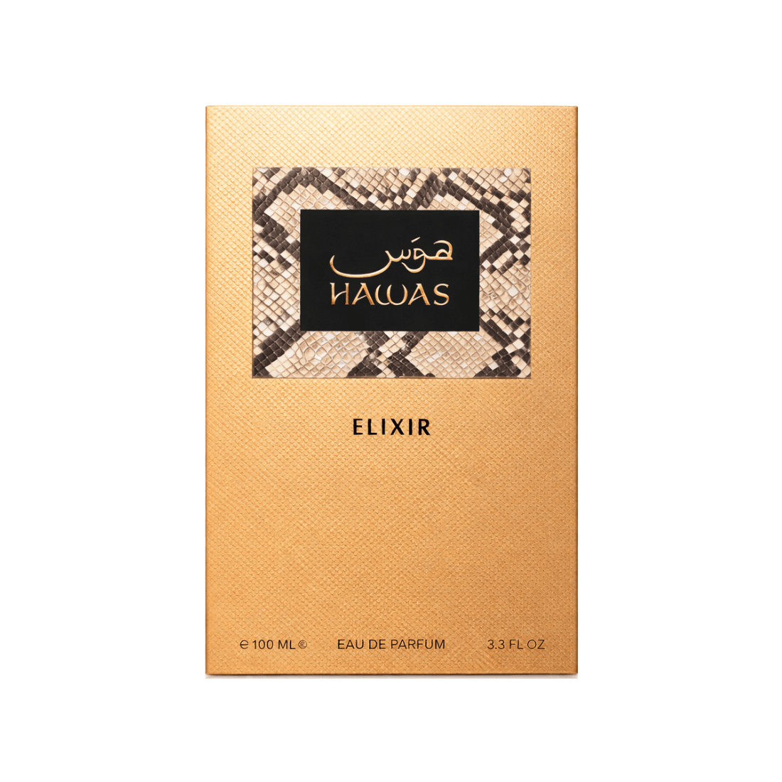 Hawas Elixir van Rasasi is een verleidelijke, oosterse vanille-unisexgeur (2024). Munt, bergamot en alsem openen met een frisse en kruidige noot; het hart onthult pure chocolade, benzoë en lavendel; de basis met vanille, tonkaboon en witte muskus zorgt voor een intense afdronk.
