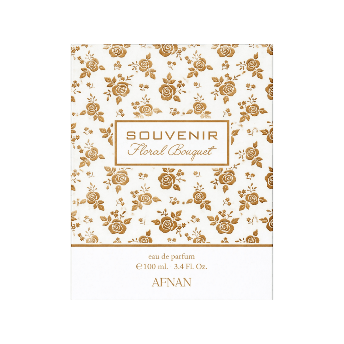Afnans Souvenir Floral Bouquet Pour Femme combineert pittige lychee en rabarber met delicate roos en pioenroos. Zachte vanille nestelt zich op muskus, amber en kasjmierhout en laat een elegant, vrouwelijk spoor achter.