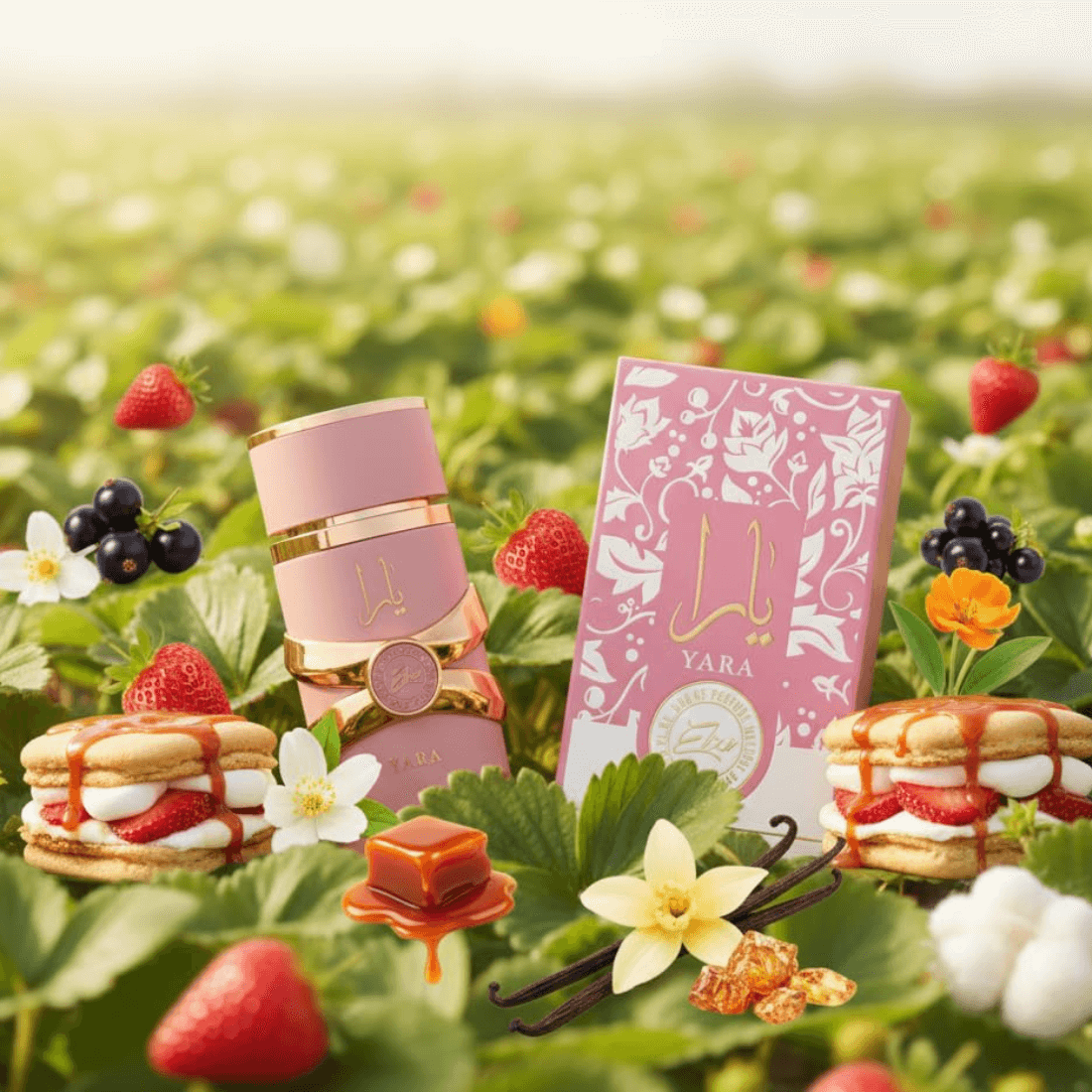 Yara Elixir is een rijkere en speelsere interpretatie van het origineel, met een uitgesproken gourmandkarakter. De opening verrast met zoete aardbeien-s'mores en zwarte bessen, wat de geur een fruitige, verleidelijke frisheid geeft. In het hart ontvouwen jasmijn en oranjebloesem zich, wat zorgt voor een elegante, vrouwelijke diepte. De romige basis van vanille, karamel, amber en musk maakt deze geur warm, zoet en uitzonderlijk langdurig. Een moderne gourmandgeur voor liefhebbers van zoete elegantie en een verslavende aantrekkingskracht.