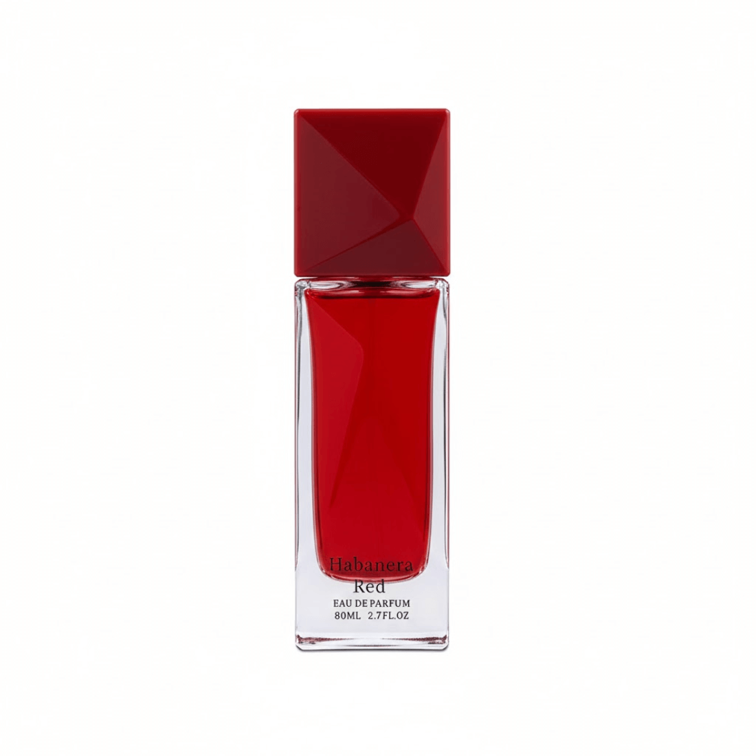 Habanera Red ist ein süßer, gourmandiger Duft mit lebendiger Fruchtigkeit. Shinus Molle, Kaffee und Birne eröffnen warm und aromatisch. Im Herzen entfalten sich Orangenblüten, Jasmin und weißer Moschus zu einer weichen, floralen Süße. Die Basis aus Vanille, Patchouli und Zedernholz sorgt für Tiefe und langanhaltende Eleganz. Ein verführerischer Unisexduft mit moderner Wärme.