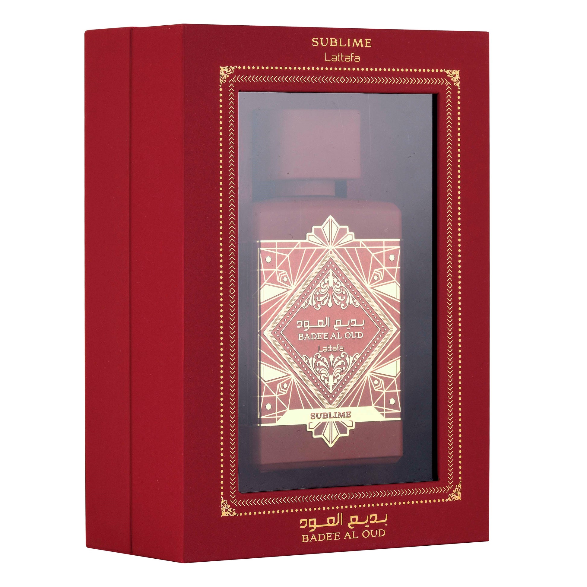 Bade'e Al Oud Sublime von Lattafa Perfumes ist ein frischer, holzig-aromatischer Duft, der sowohl für Frauen als auch für Männer entworfen wurde und 2023 neu eingeführt wurde. Er öffnet sich mit Kopfnoten von Apfel, Litschi und Rose, gefolgt von Herznoten aus Pflaume und Jasmin, und endet mit Basisnoten von Moos, Vanille und Patchouli.