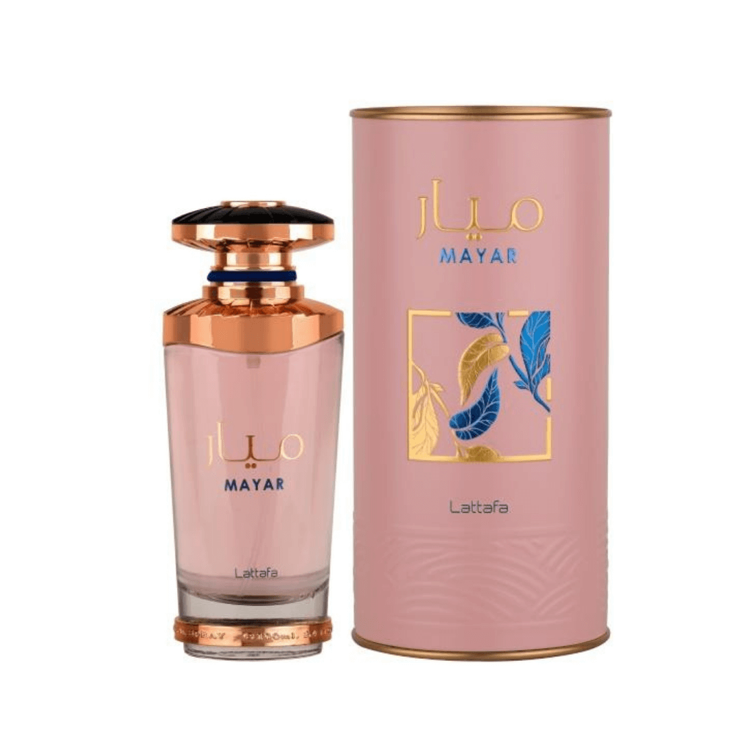 Mayar von Lattafa Perfumes ist ein kürzlich veröffentlichter blumig-fruchtiger Duft, der speziell für Frauen entwickelt wurde und 2022 debütierte. Er eröffnet mit Kopfnoten von Litschi, Himbeere und Veilchenblatt, gefolgt von Herznoten von weißer Rose, Pfingstrose und Jasmin. Der Duft wird mit Basisnoten von Moschus und Vanille abgerundet.